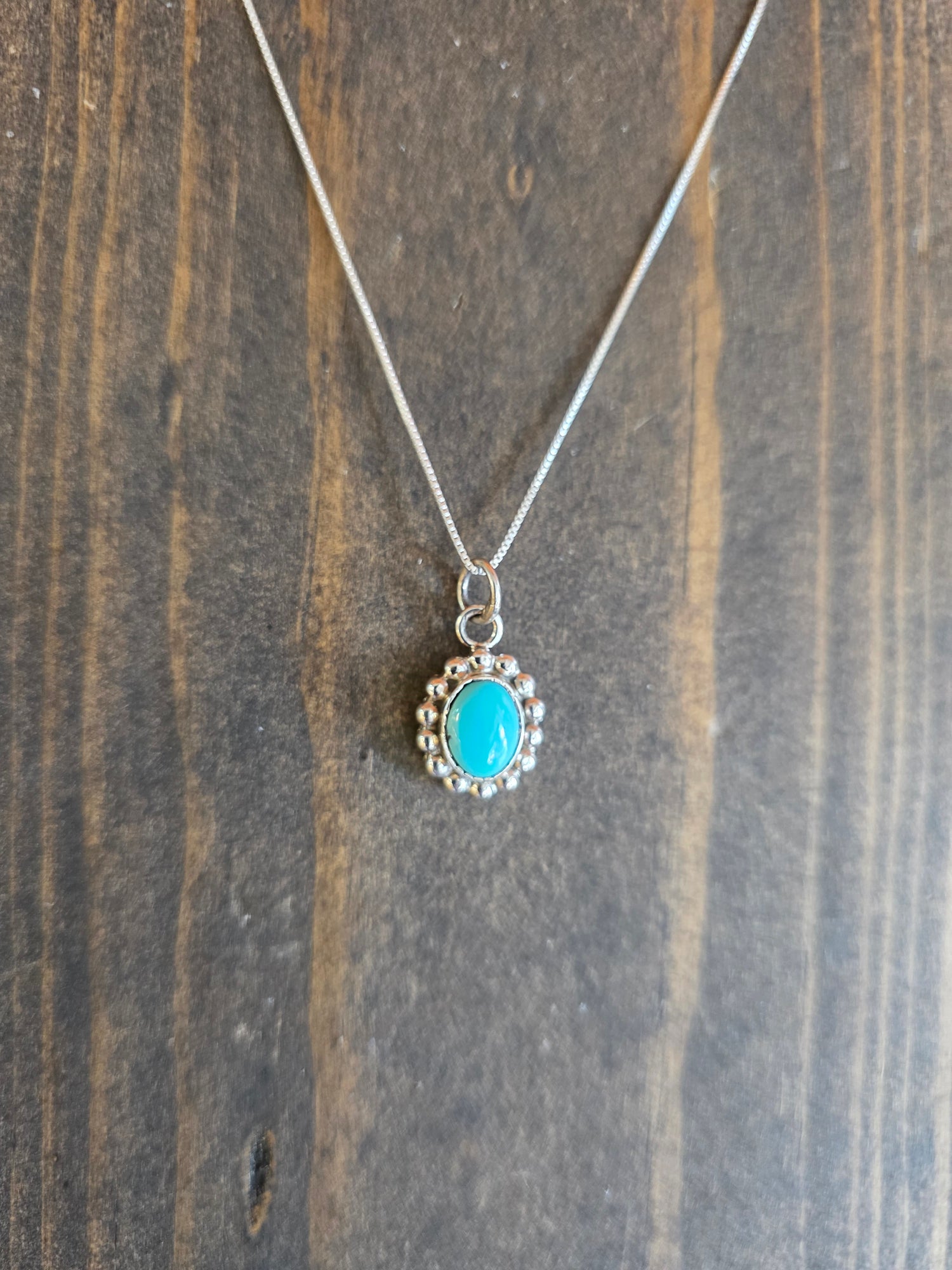 Dotted Sterling and Turquoise Pendant Necklace