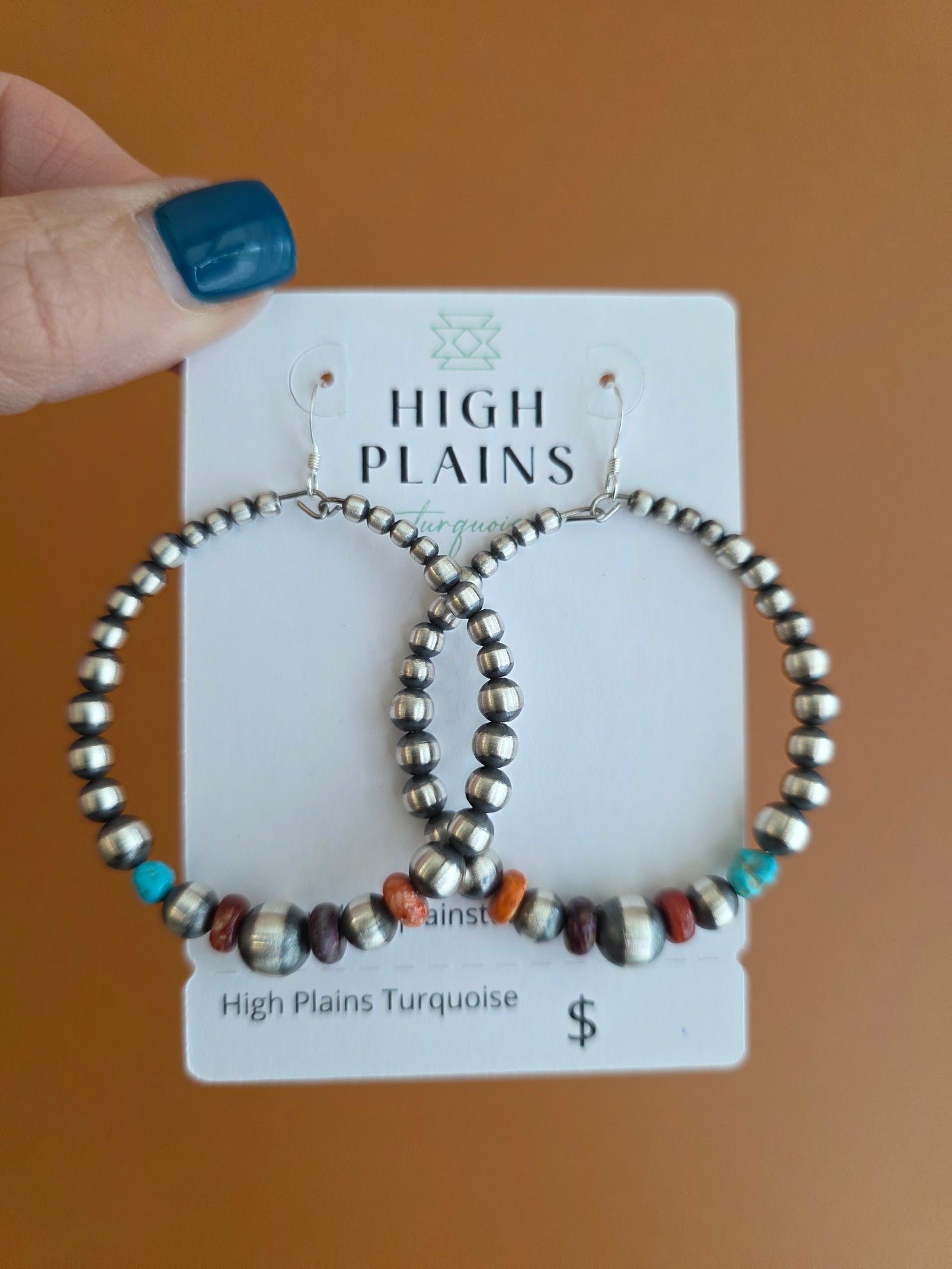 Graduated Sterling Hoops with Turquoise and Spiny Accent