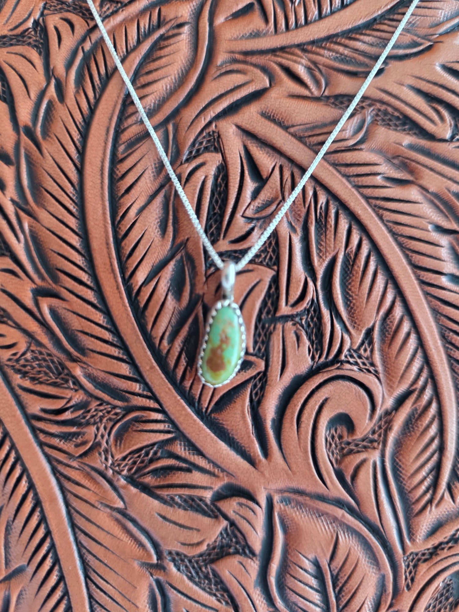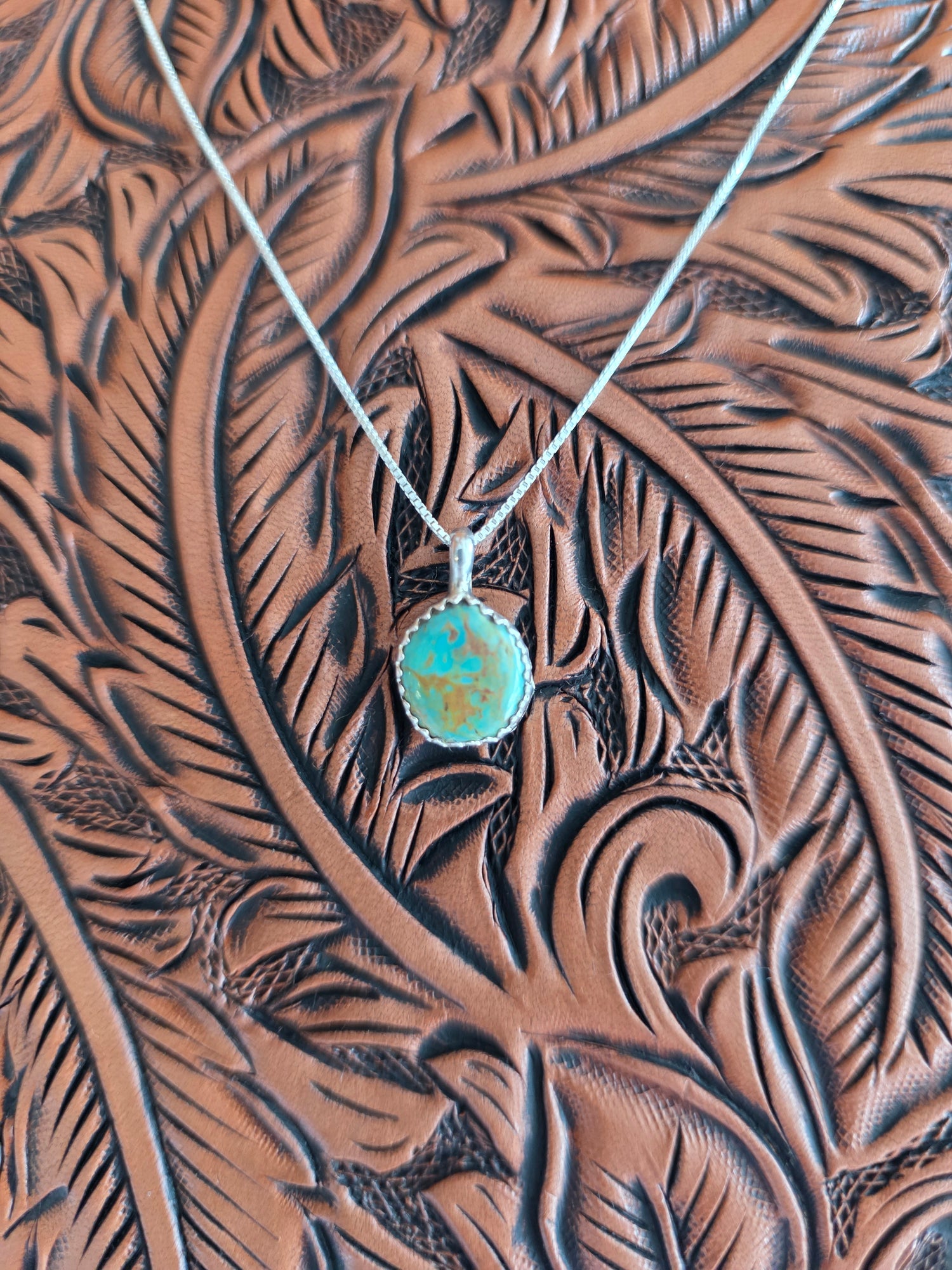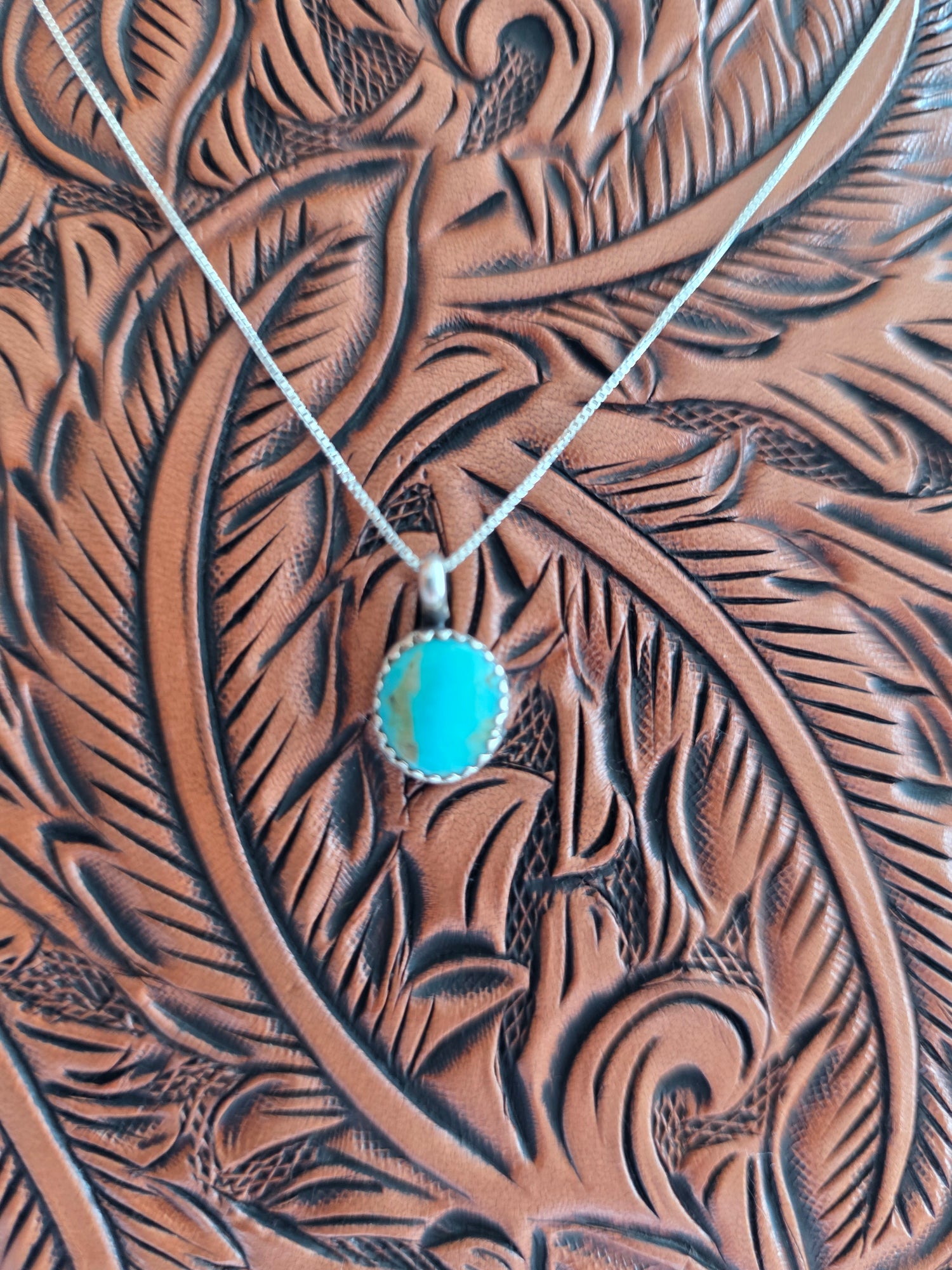 A dainty pop of color you can wear every day. This mini turquoise pendant is set in a sleek sterling silver bezel and hangs from a delicate chain, creating the perfect balance of simplicity and Southwestern charm. Lightweight, eye-catching, and effortlessly stackable, it’s an easy go-to piece whether worn alone or layered with your favorite necklaces.