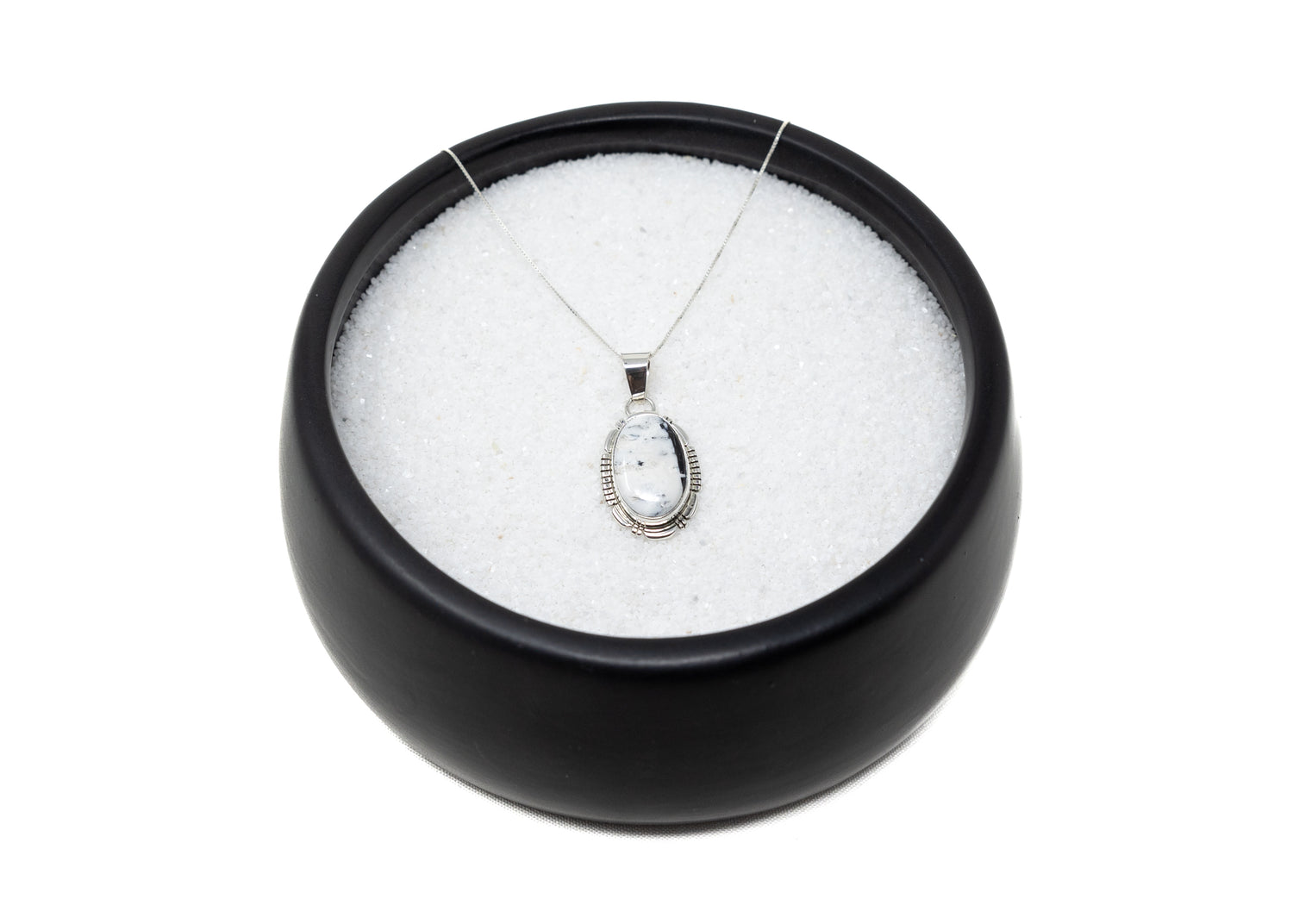 Oval White Buffalo Sterling Bezel Pendant Necklace