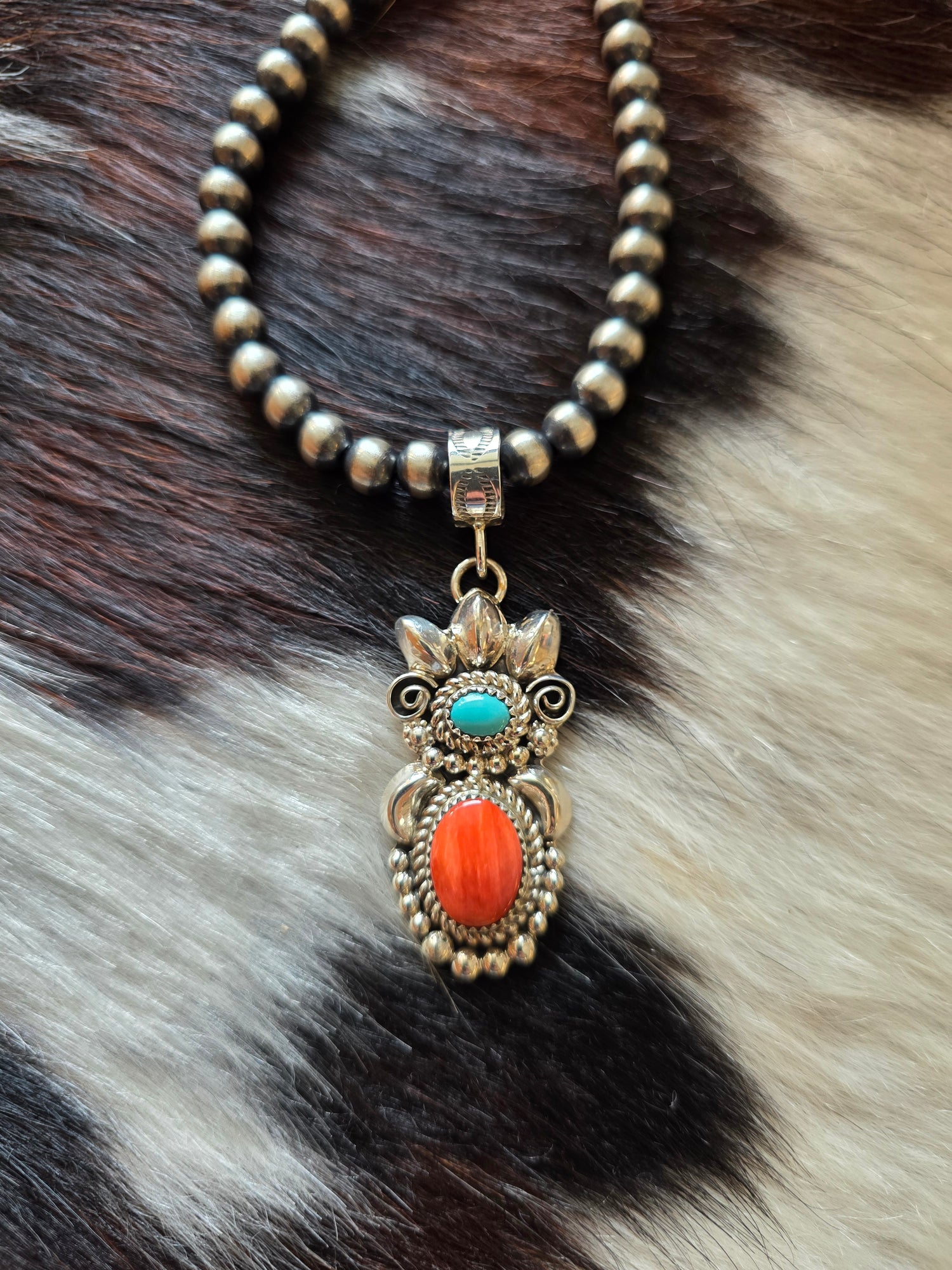 Navajo Sterling Silver, Turquoise, and Spiny Oyster Maiden Pendant with Detachable Bail