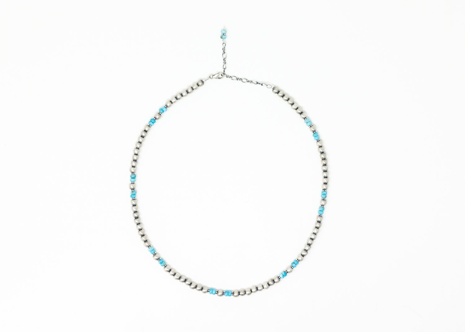 - 16" length with a 2" extender, finished with two 4mm turquoise accent beads and a lobster clasp closure