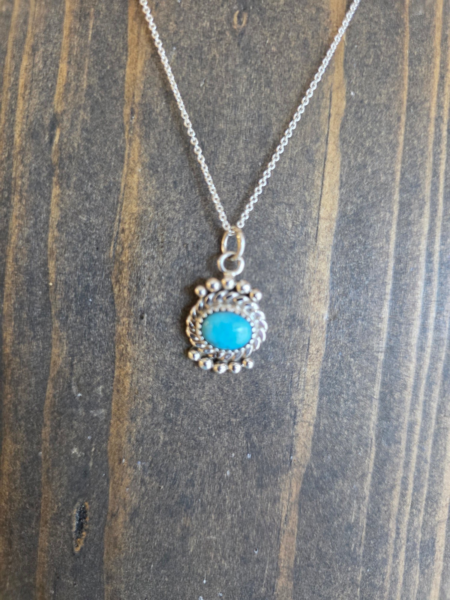 Sterling Silver Dot and China Mountain Turquoise Pendant Necklace