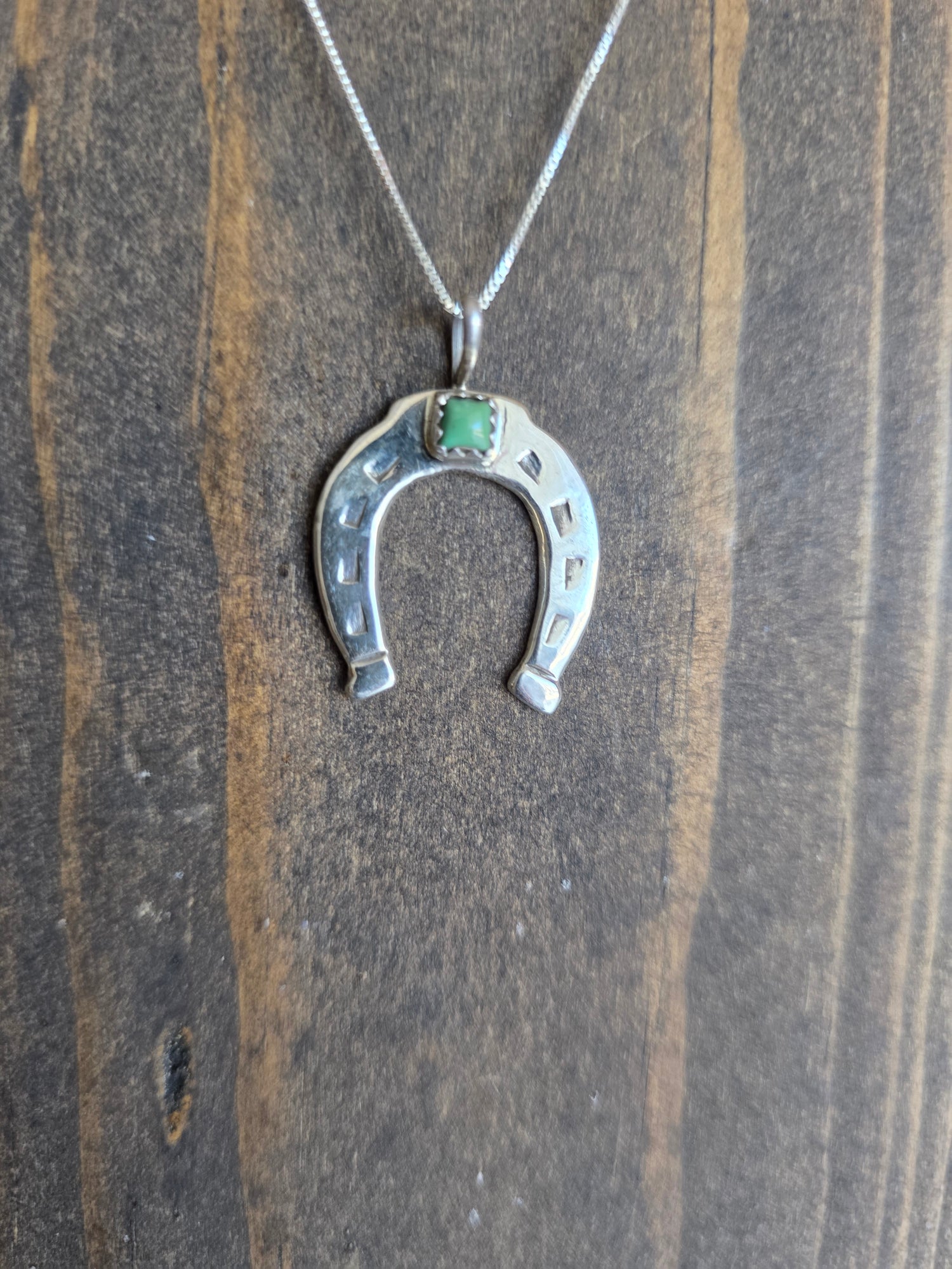 Sterling Silver Turquoise Horseshoe Pendant Necklace