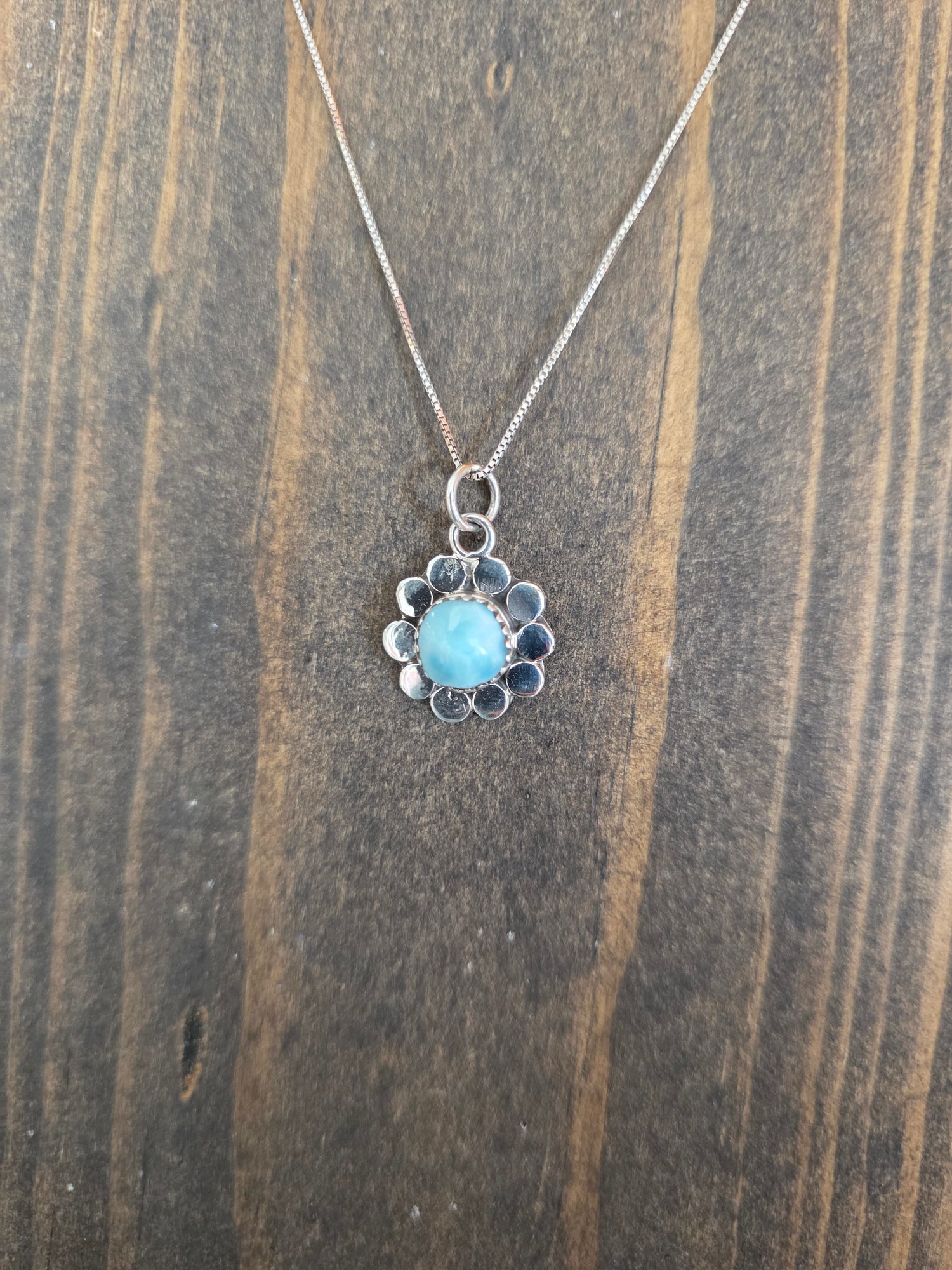Sterling Sunflower and Stone Pendant Necklace