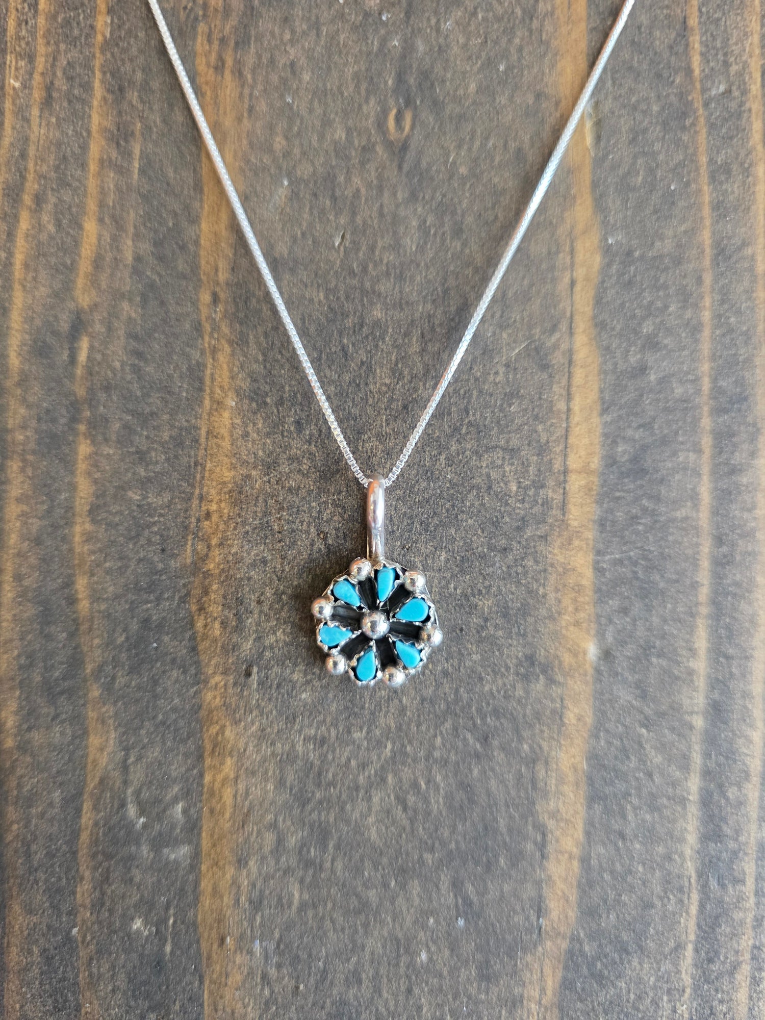 Zuni Petit Point Turquoise Flower Pendant Necklace